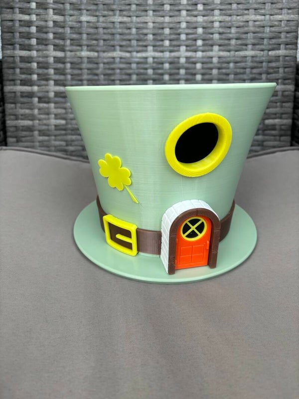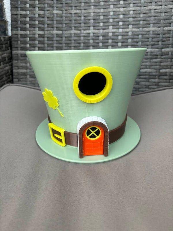 Mit kleinen Details wie Tür, Fenster und Kleeblatt wirkt es wie ein Märchenhaus – ideal für Garten, Terrasse oder Balkon.