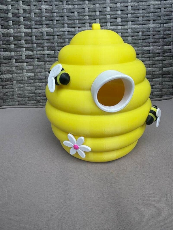 Dieses charmante Vogelhaus 🐦 in Bienenstock-Optik ist nicht nur ein sicherer Nist- und Futterplatz, sondern auch eine echte Gartendeko! Mit niedlichen Bienen-Details und einer Blume verziert, bringt es fröhliches Sommerfeeling in deinen Garten.