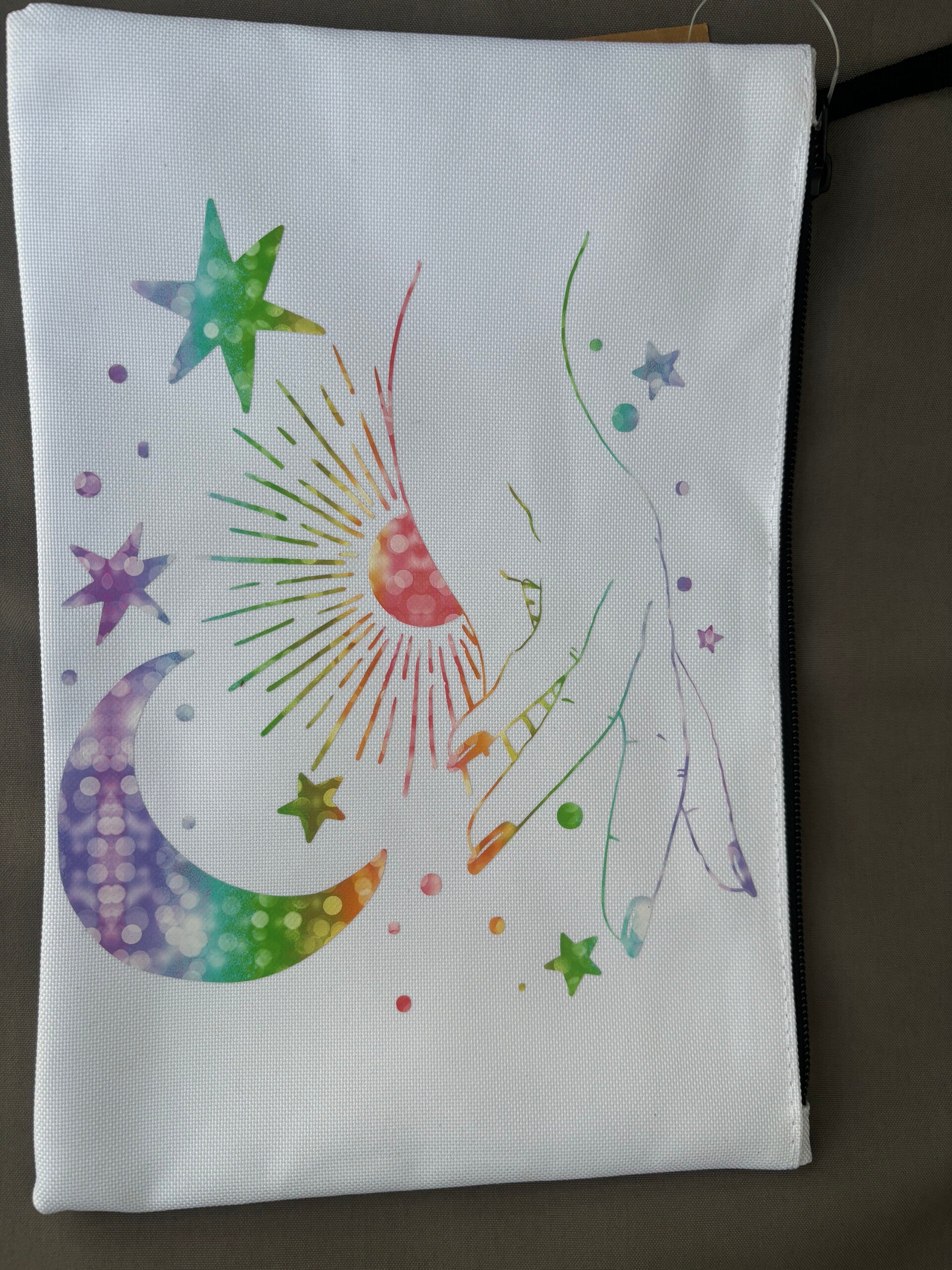 Diese magische Tasche mit einer verträumten Hand, Sternen, Mond & Regenbogen-Design ist ein echter Hingucker – perfekt für alle, die es ein bisschen mystisch & verspielt lieben.