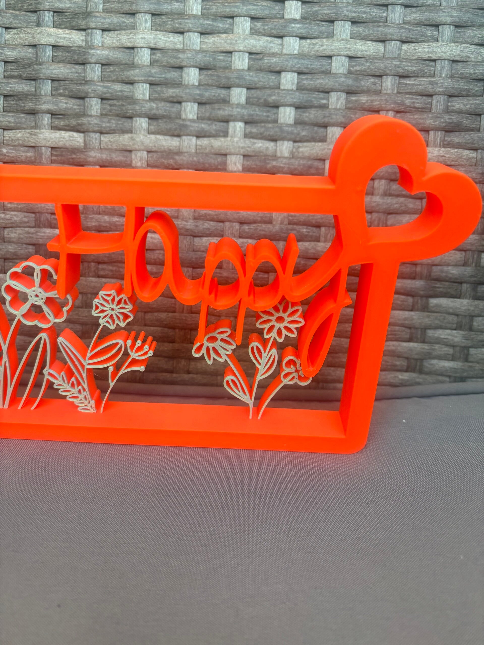 Diese "Happy" Deko mit einem Blumenmotiv ist die perfekte Tischdeko für fröhliche Anlässe. In einer modernen, zwei-farbigen Ausführung erhältlich, bringt sie Frische und Positivität in jedes Zuhause. Die Deko kombiniert kunstvolle Blumenelemente mit einem verspielten Herz. Ideal für jedes Geschenk, das Freude verbreitet.