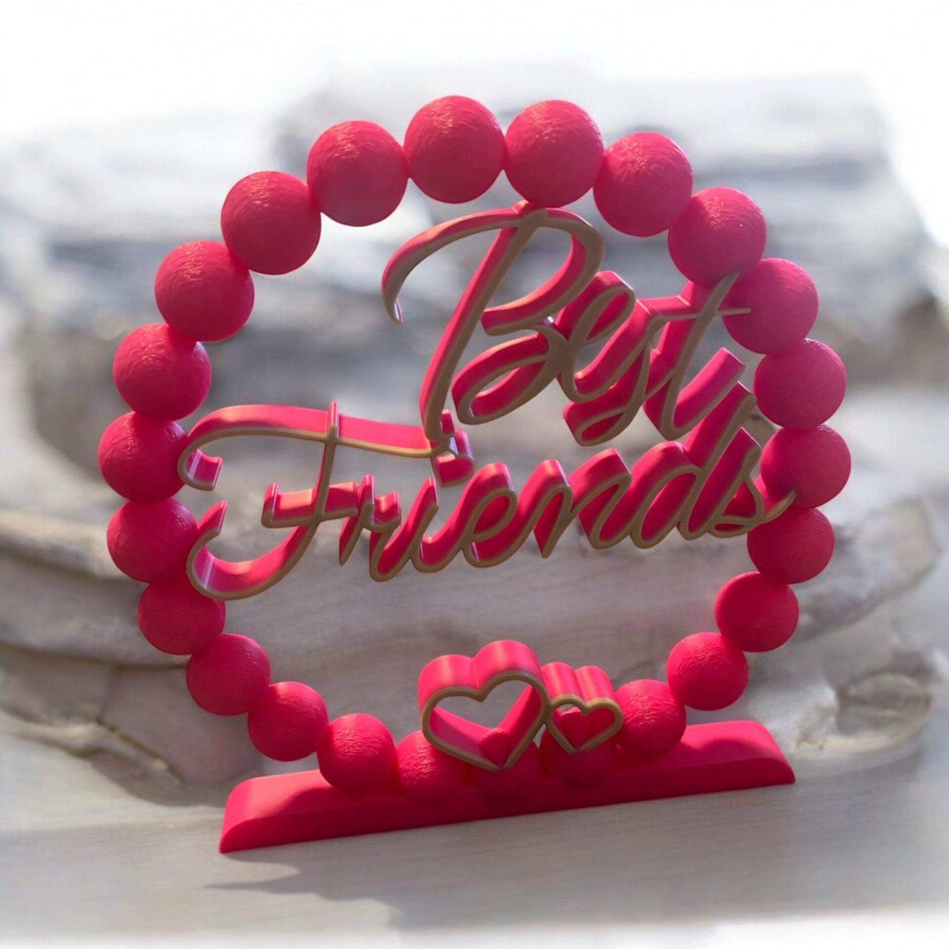 Diese „Best Friends“-Dekoration aus 3D-Druck ist eine farbenfrohe und stilvolle Art, die Freundschaft zu feiern. In zwei Farben wählbar und mit einem fröhlichen Herzdesign, ist es das perfekte Geschenk für beste Freunde oder eine einzigartige Dekoration für dein Zuhause.