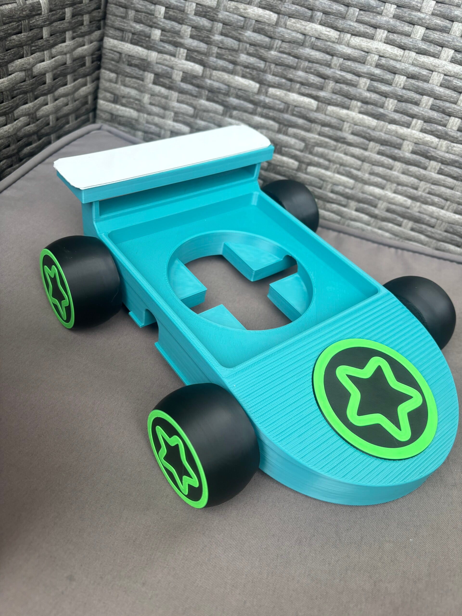 🚗 Design wie ein Rennauto – die Räder sind feststehend, damit nichts wegrollt.