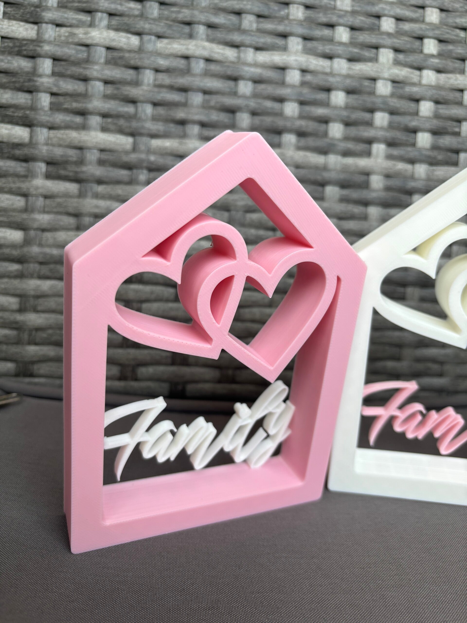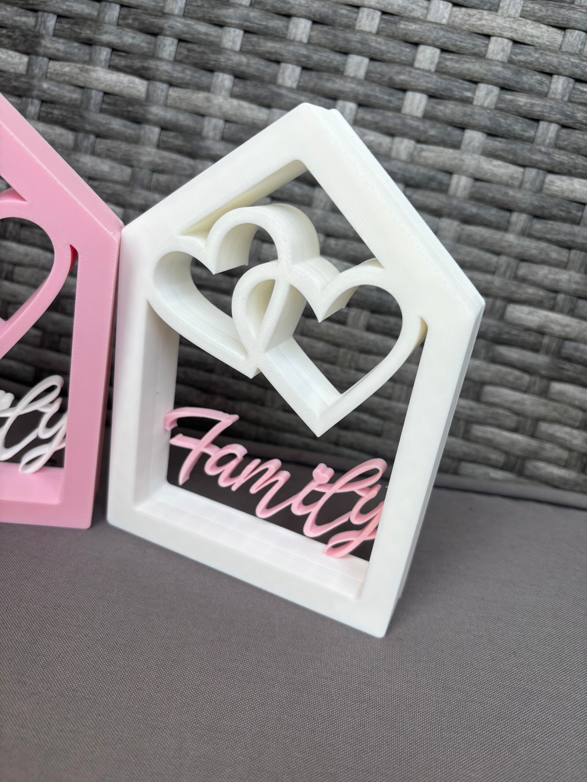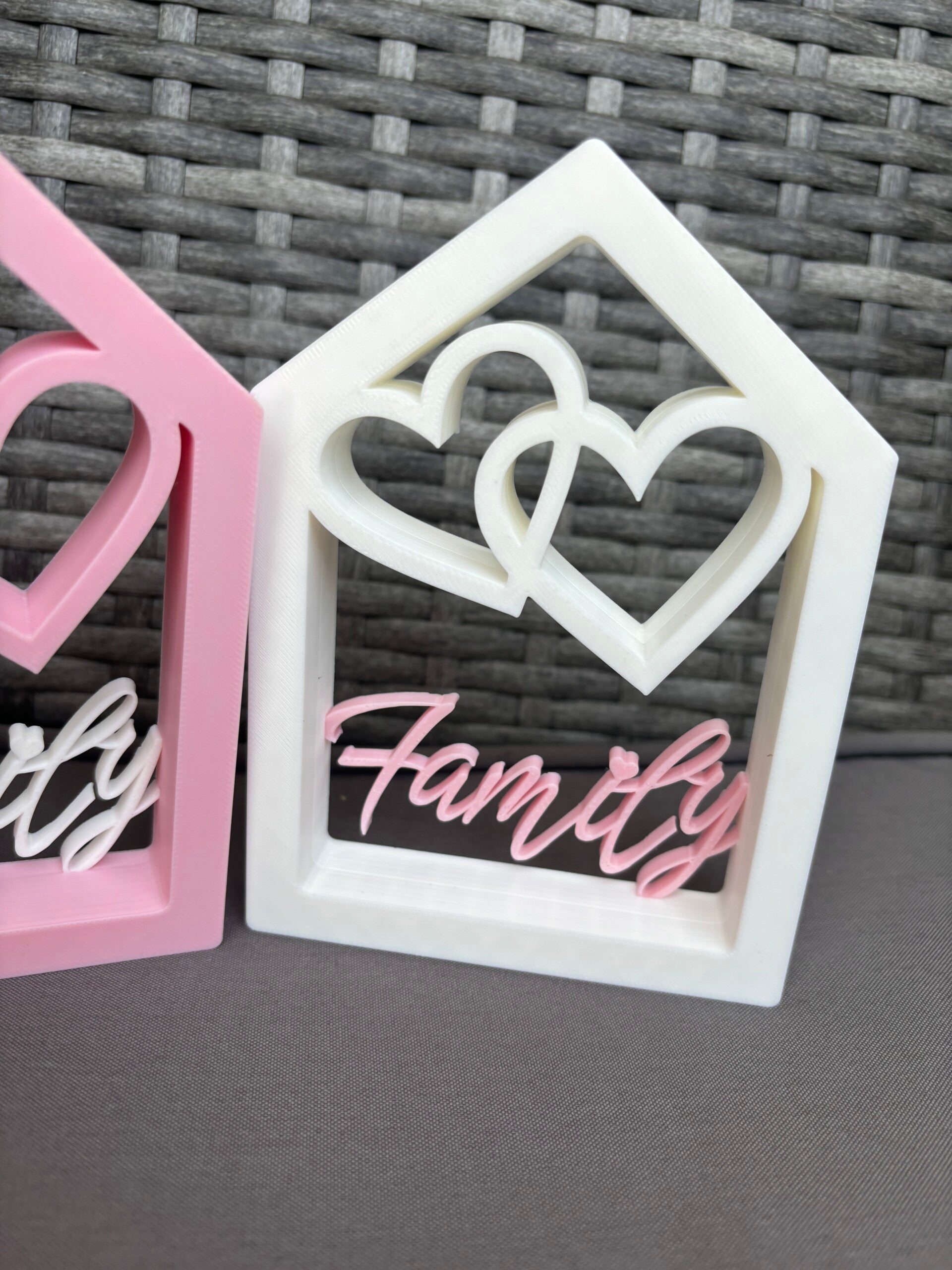Deko „Family“ mit Herzen | 3D-Druck | 10x14 cm | Geschenk für Familie & Freunde | Hausrahmen Deko | Einweihungsgeschenk
