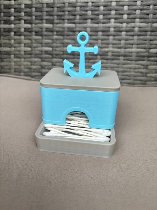 WattestÀbchen Spender Anker | Maritime Bad Deko | Q-Tips Aufbewahrung Box | 3D Druck Organizer Geschenk Handmade