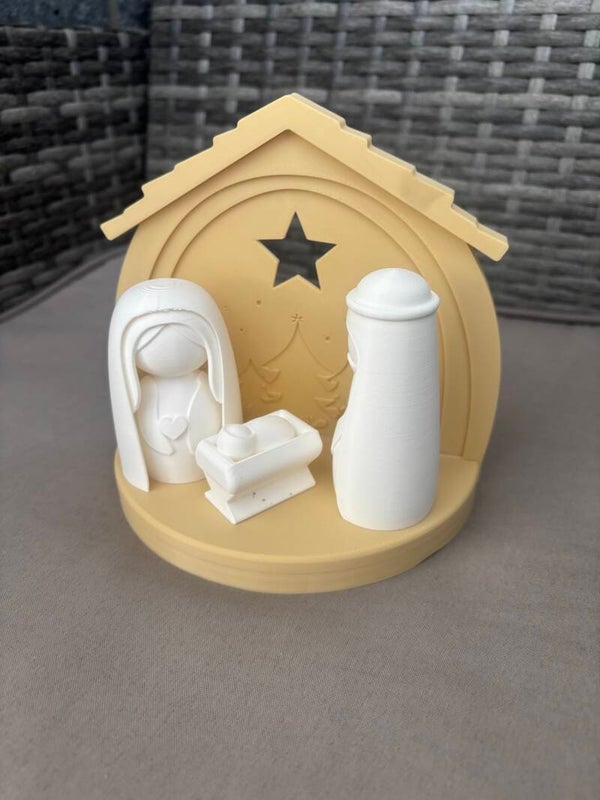 Moderne Weihnachtskrippe mit LED-Platz | 3D-Druck Krippe | Heilige Familie Deko
