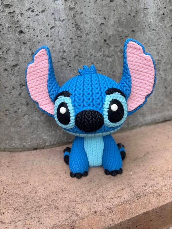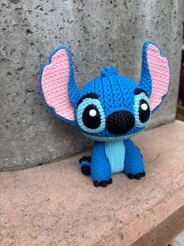 Stitch Figur im Häkel-Design | 3D-Druck | Sitzende Dekofigur – Handgefertigt