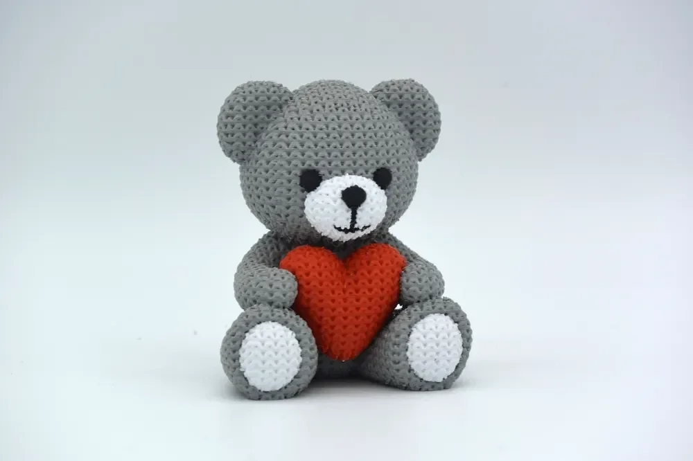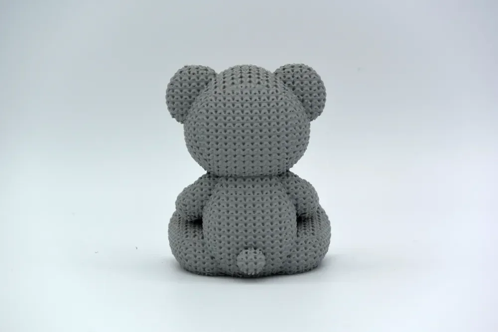 Dieser zuckersüße Teddy in Häkeloptik wird im 3D-Druckverfahren gefertigt und wirkt wie liebevoll gehäkelt – nur langlebiger und stabiler.