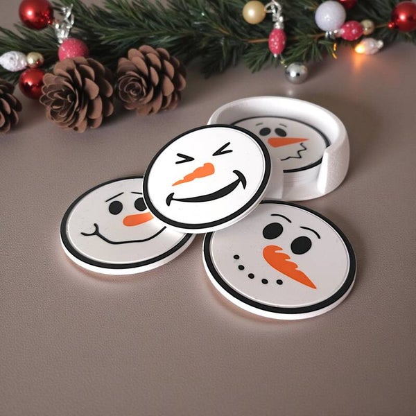 Schneemann Untersetzer Set – 6er Set mit Halterung | Winter & Weihnachtsdeko | 3D-gedruckt