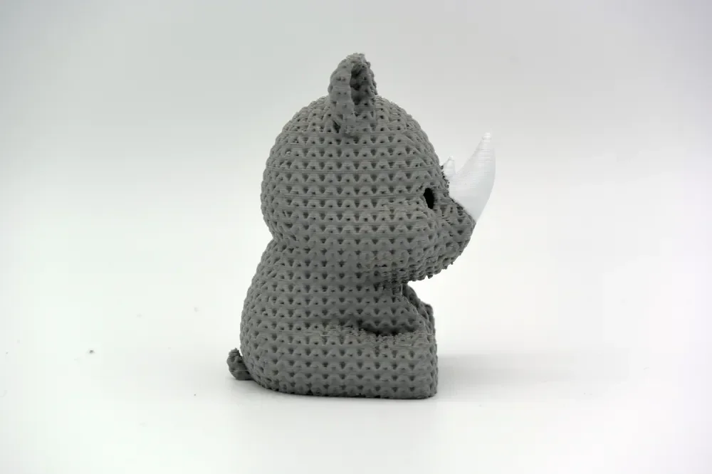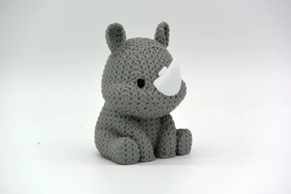 Dieses niedliche Rhino sieht aus wie gehäkelt, ist aber aus hochwertigem 3D-Druck gefertigt.