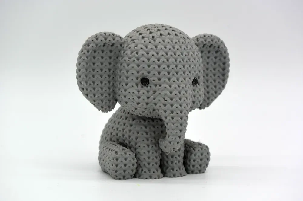 Dieser süße Elefant sieht aus wie gehäkelt, ist aber aus hochwertigem 3D-Druck gefertigt.