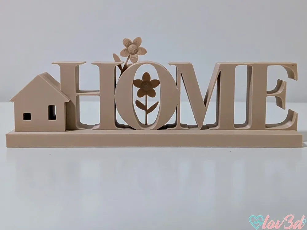 HOME Schriftzug Deko – modernes Zuhause Schild – 3D Druck Haus & Blumen – Geschenk Einzug Familie – personalisierbare Farbe – Tischdeko