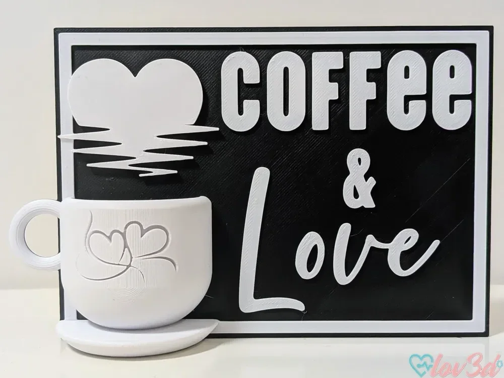 Coffee & Love Deko Schild – Kaffee Wanddeko – Küchen Deko modern – Coffee Lover Geschenk – 3D Druck – Wunschfarbe